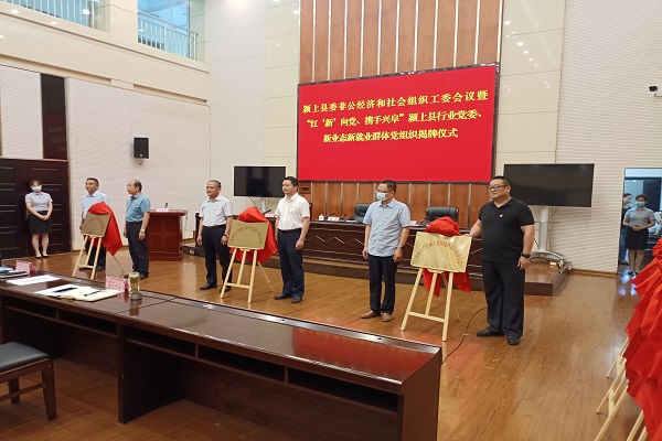 7月25日,我县举行县委非公经济和社会组织工委会议暨“红‘新’向党、携手兴阜”颍上县行业党委、新业态新就业群体党组织揭牌仪式。县委常委、组织部部长郭颖升参加仪式并讲话,县委组织部常务副部长刘凯主持会议。县委非公工委成员单位负责同志及业务科室负责人,各乡镇组织委员,县经开区负责同志,新业态新就业群体党支部、部分新业态新就业群体代表参加会议。