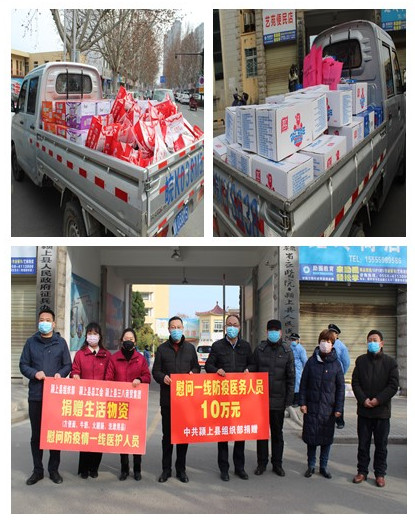 慰问组来到颍上县人民医院南院区,送去了方便面、牛奶等生活物资及10万元慰问金,感谢他们在党和人民最需要的关键时刻,在关乎人民生命安危的重大考验面前,义无反顾地战斗在危险的工作岗位上,并叮嘱他们要注重防护措施,保护好自己,战胜疫情。