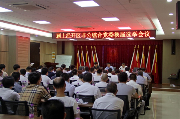 会议审议通过了《颍上经开区第一届非公综合党委任期工作报告》和《颍上经开区第二届非公综合党委换届选举办法》。