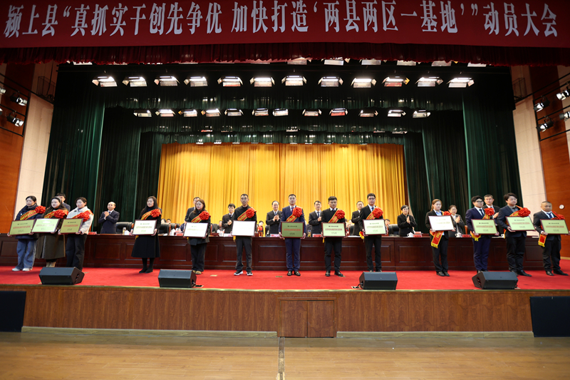 会议传达学习了习近平总书记系列重要论述及省、市“新春第一会”精神;通报表彰了45个先进集体、145名先进个人,24家优秀企业代表受邀在主席台就座;3个乡镇、1家县直单位、1家驻颍企业、1个村(社区)主要负责同志和2家企业代表现场作了交流发言。